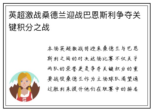 在体育竞技的舞台上,艾维斯与埃斯托里这两位选手的对决无疑成为了人们关注的焦点。两位选手各具特色,风格迥异,他们之间的较量不仅是一场技术和智慧的比拼,也是心理素质和耐力的挑战。本文将从四个方面深入分析这场对决,包括选手背景、技战术特点、心理状态以及比赛前景,从而揭示谁将在这场激烈的角逐中脱颖而出。 ...